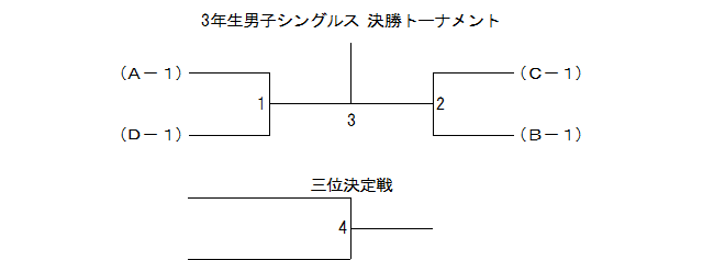 | 3年生男子シングルス Cブロック | 宮村 | 石田 | 湊 | 順位 |
