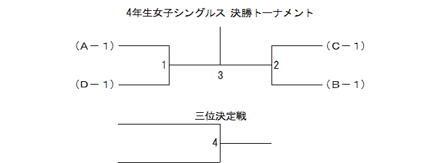 | 4年生女子シングルス Aブロック | 大城 | 伊藤 | 比谷 | 岡村 | 順位 |